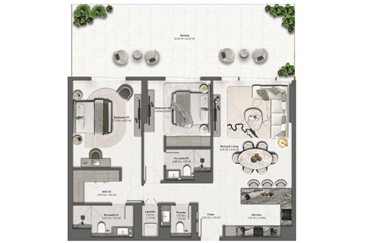 Thoughtfully designed open layouts ensure seamless flow between kitchen and lounge areas for contemporary living.