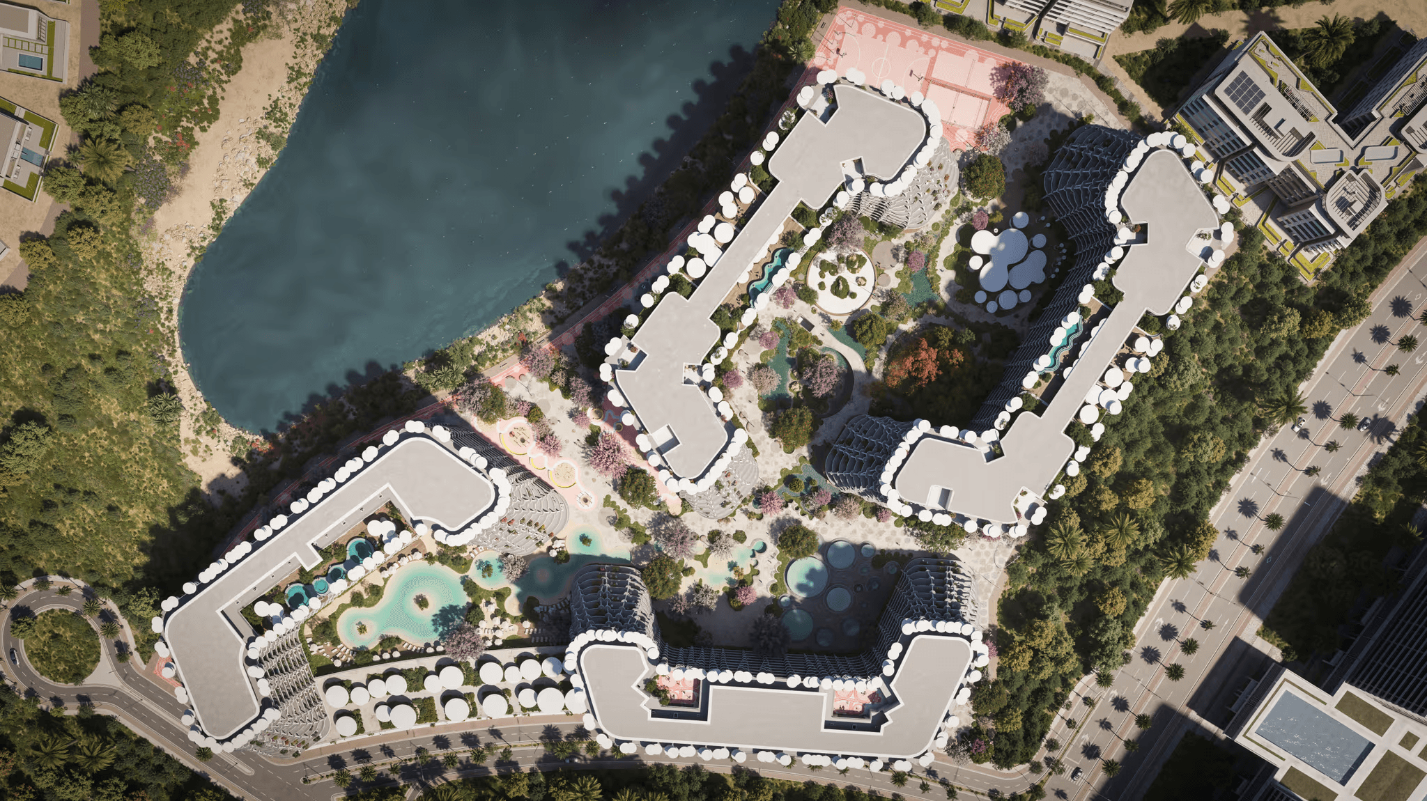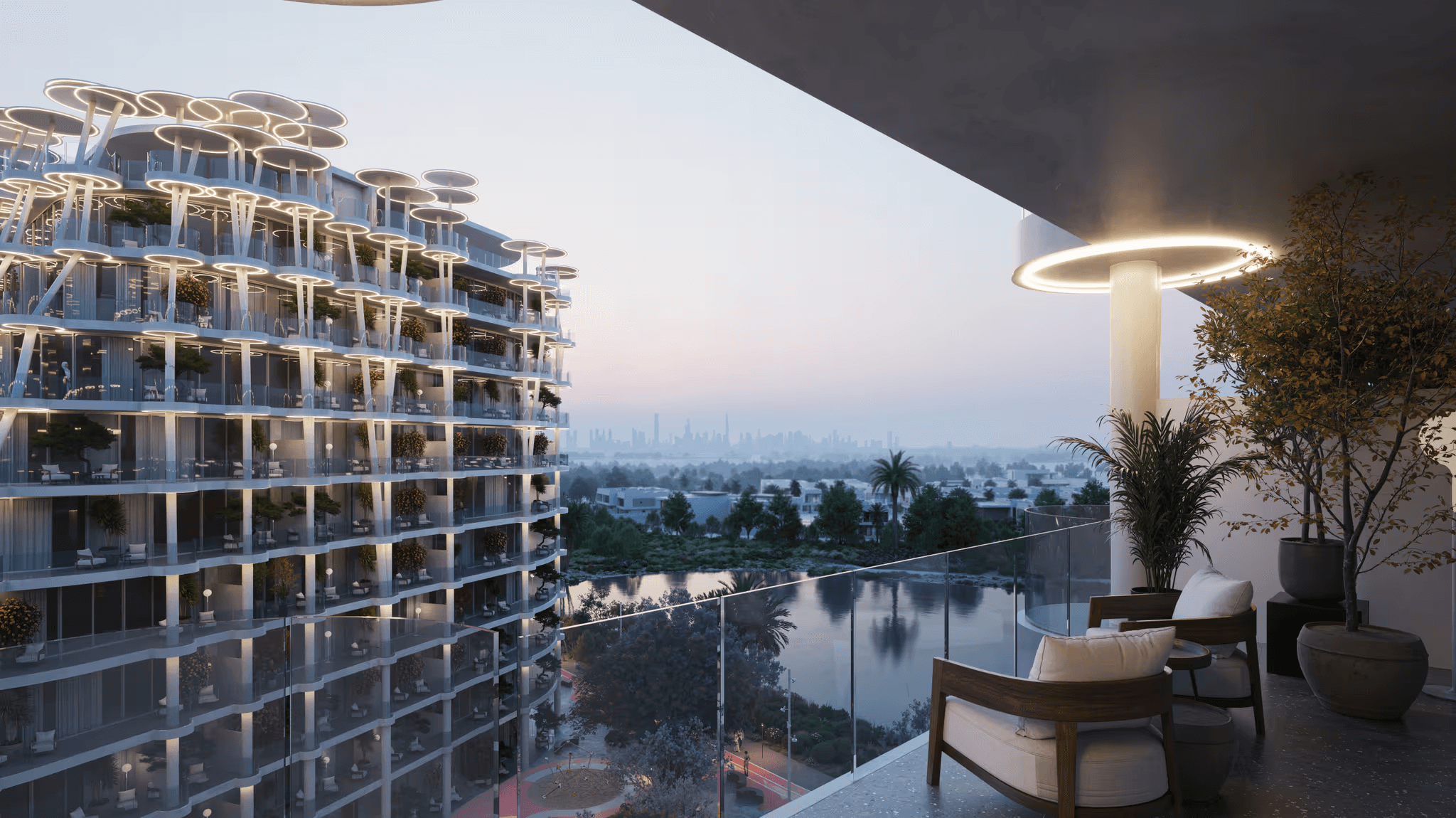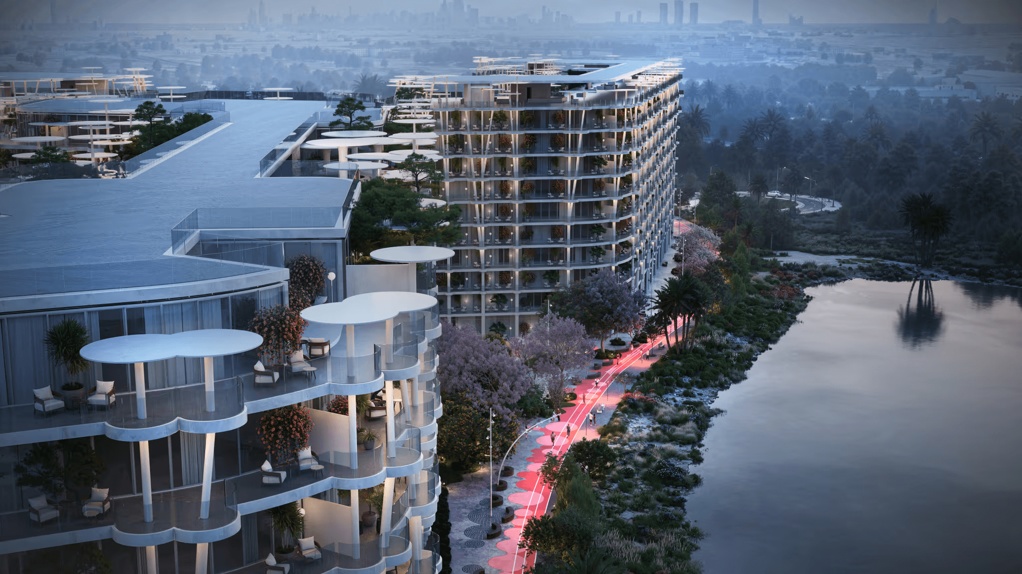 More than 50% of the master community is dedicated to landscaped green spaces, meditation zones, pedestrian walkways, and leisure gardens — creating a calm, nature-integrated environment within one of Dubai’s most strategically located master developments.